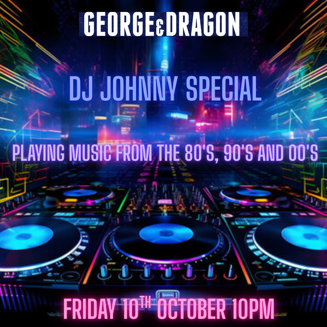 DJ Johnny will be playing a range of hits from the 80’s, 90’s and 00’s. will your favourite be in the set? come on down and enjoy all your favourite hits from those decades!