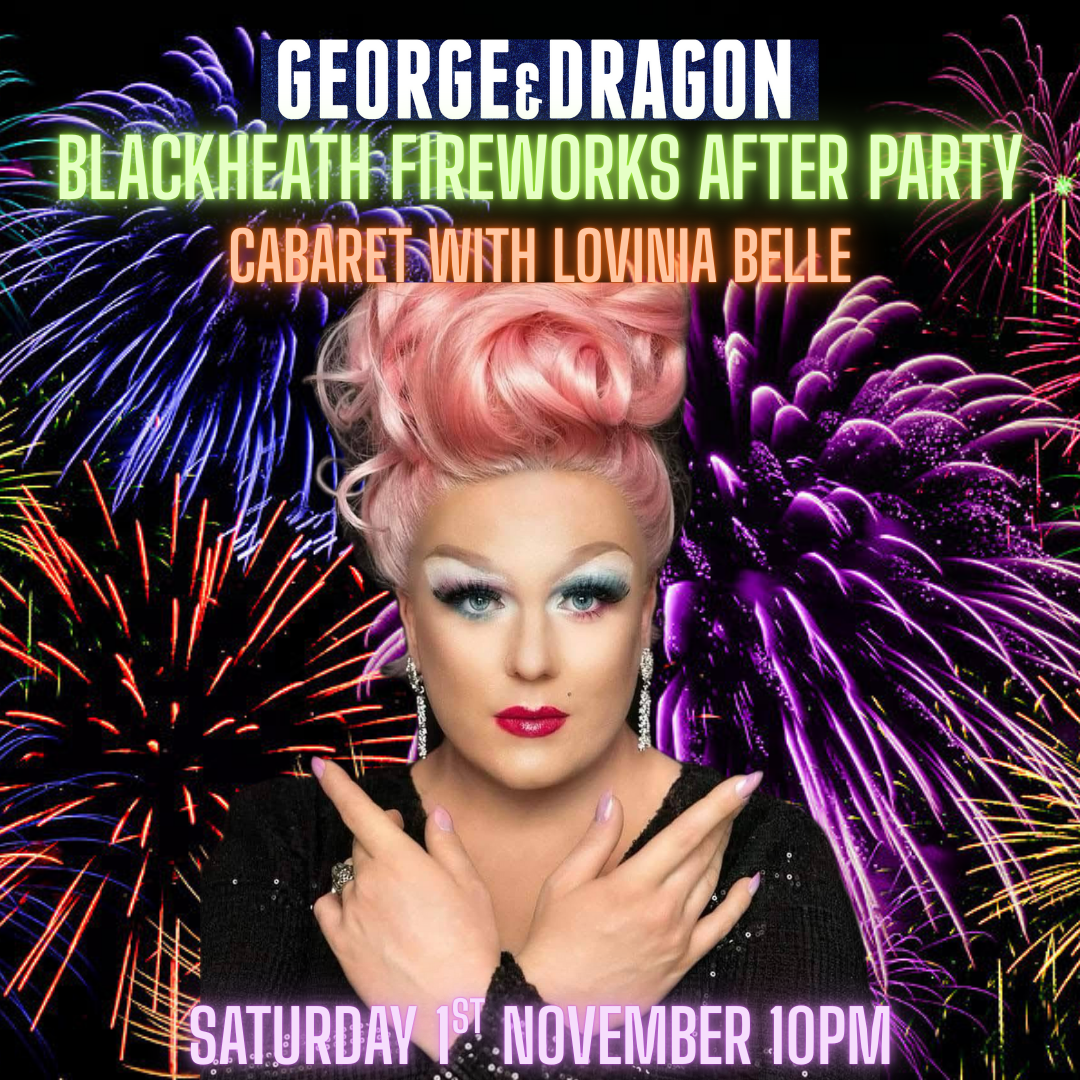 Blackheath fireworks are returning after 5 years, so we are hosting an after party to celebrate! The fabulous Lovinia Belle will be on stage at 10pm. you are in for a great night.